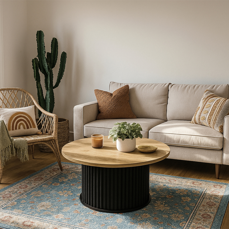 Τραπεζάκι σαλονιού Bohema Megapap χρώμα μαύρο – sepet oak Ø85×43,2εκ.
