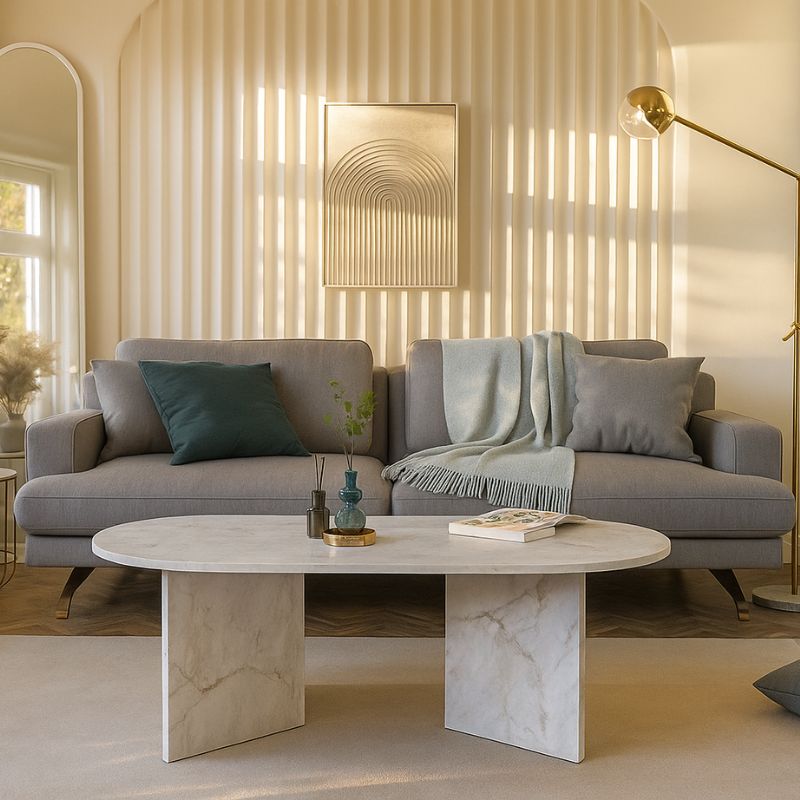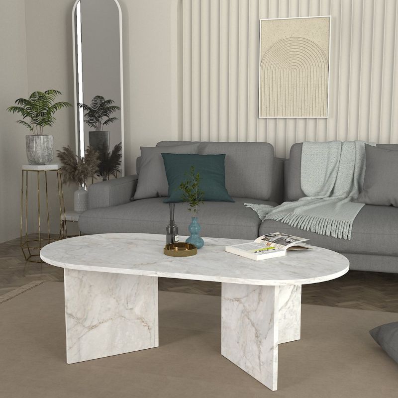 Τραπεζάκι σαλονιού Cortado Megapap χρώμα λευκό εφέ μαρμάρου 120x60x39,6εκ.