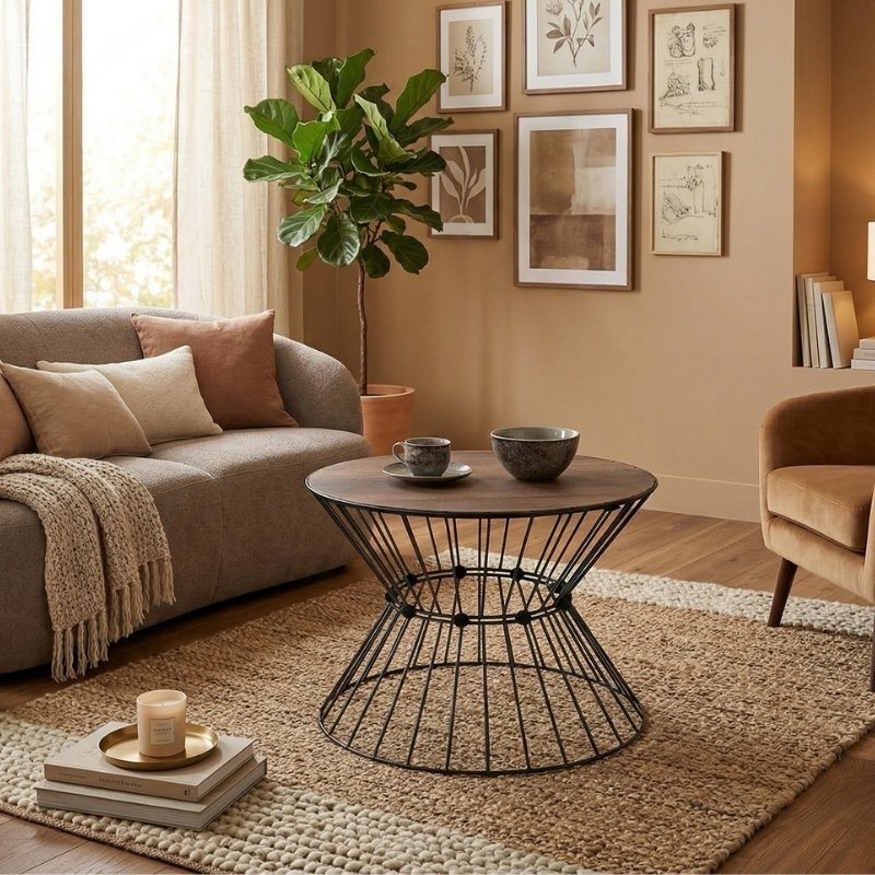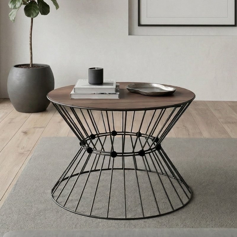 Τραπεζάκι σαλονιού Girene Megapap μεταλλικό – Mdf χρώμα μαύρο – καρυδί Ø55×42εκ.