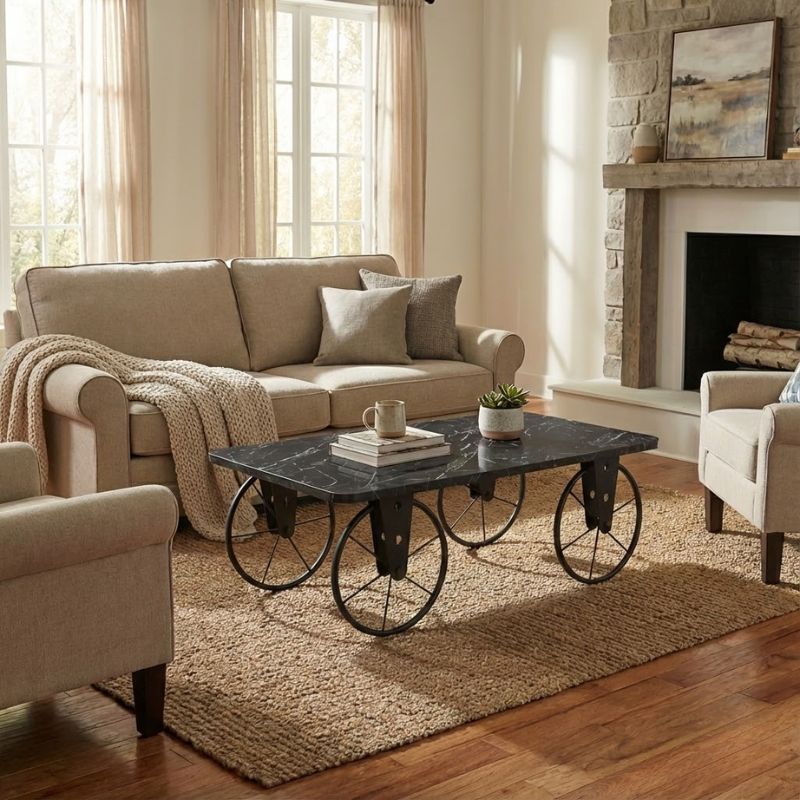 Τραπεζάκι σαλονιού Jemmy Megapap Mdf – μεταλλικό χρώμα μαύρο εφέ μαρμάρου 90x55x33εκ.
