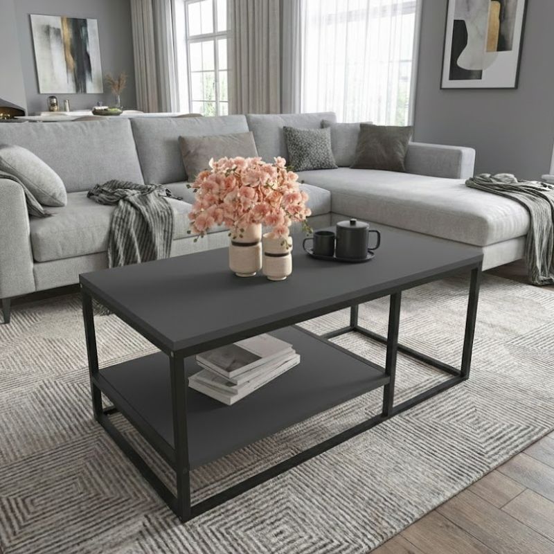 Τραπεζάκι σαλονιού Kane Megapap μεταλλικό – μελαμίνης χρώμα ανθρακί 106x50x42εκ.