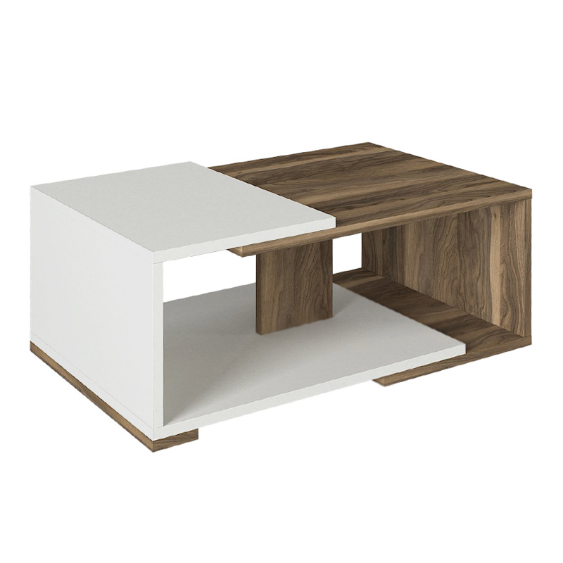 Τραπεζάκι σαλονιού Mareta Megapap από μελαμίνη χρώμα λευκό – καρυδί 81,8x50x35εκ.