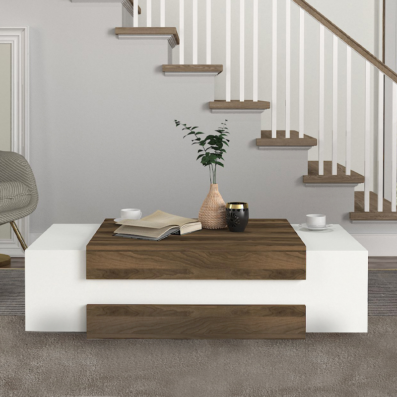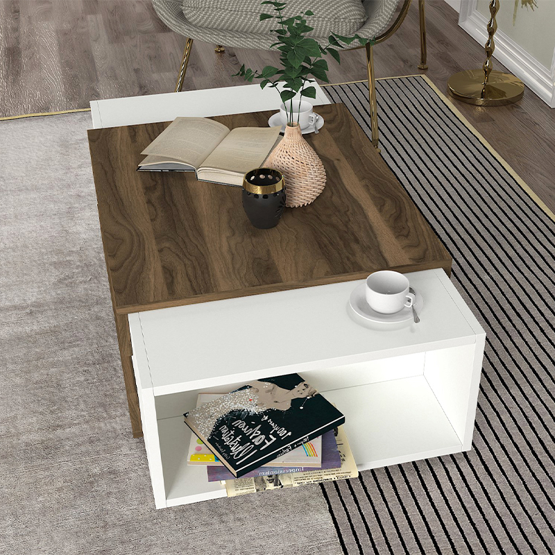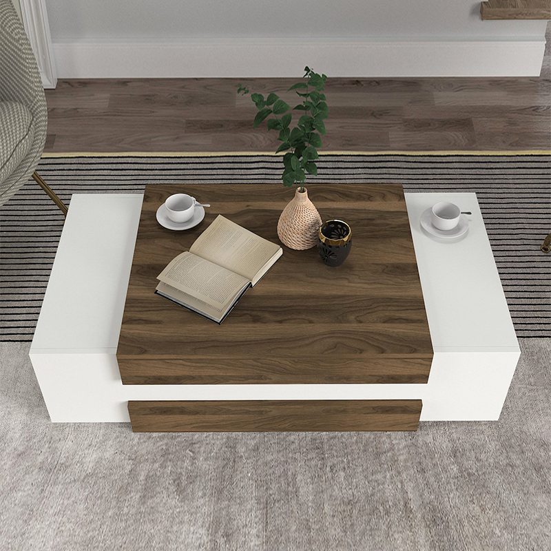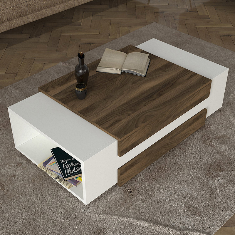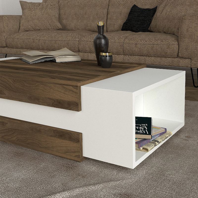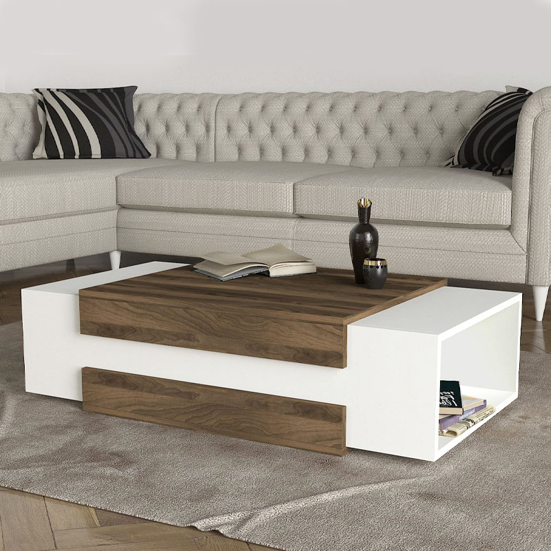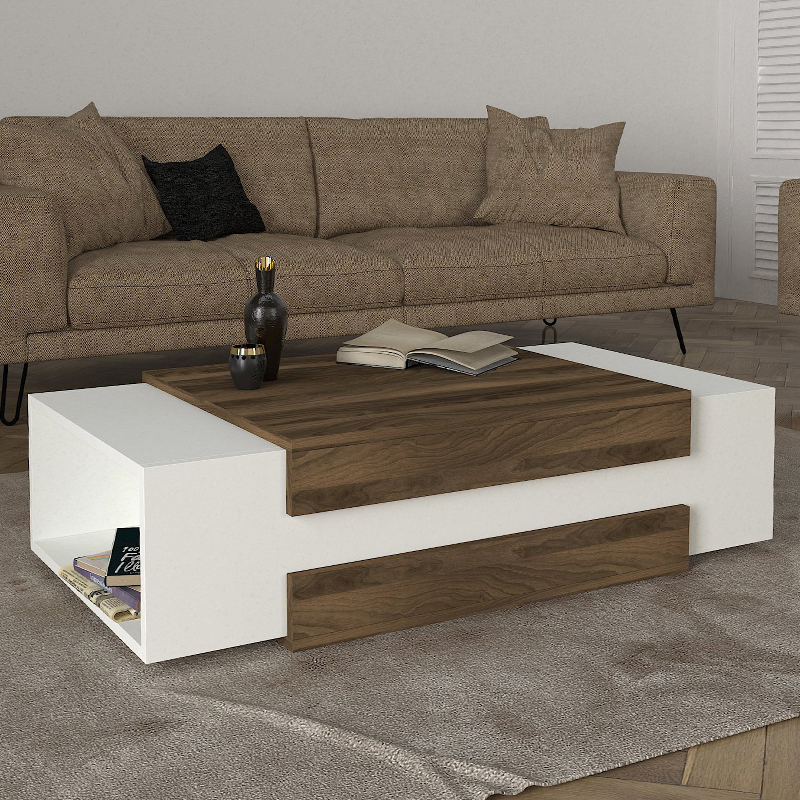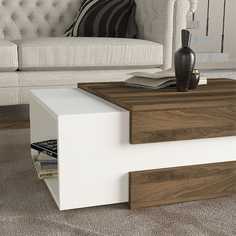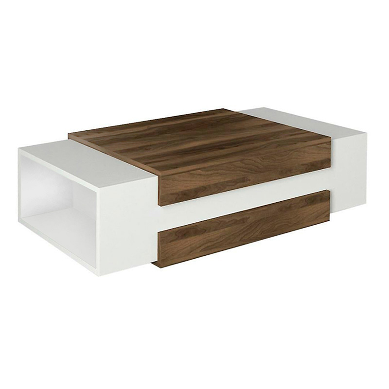 Τραπεζάκι σαλονιού Nora Megapap από μελαμίνη χρώμα λευκό – καρυδί 110×60,6×31εκ.