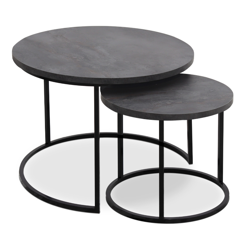 Τραπεζάκια σαλονιού Gary Megapap Mdf – μεταλλικό χρώμα σκούρο γκρι σκυροδέματος 65x65x44εκ.