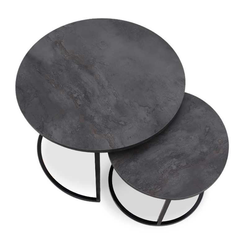 • Το σετ περιλαμβάνει δύο στρογγυλά τραπεζάκια, ένα μικρότερο κι ένα μεγαλύτερο.