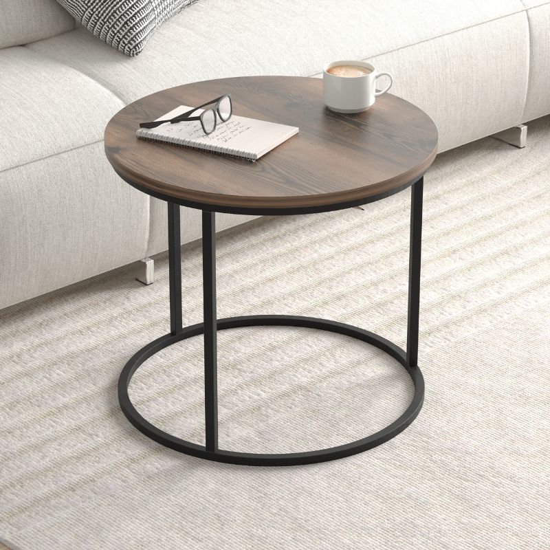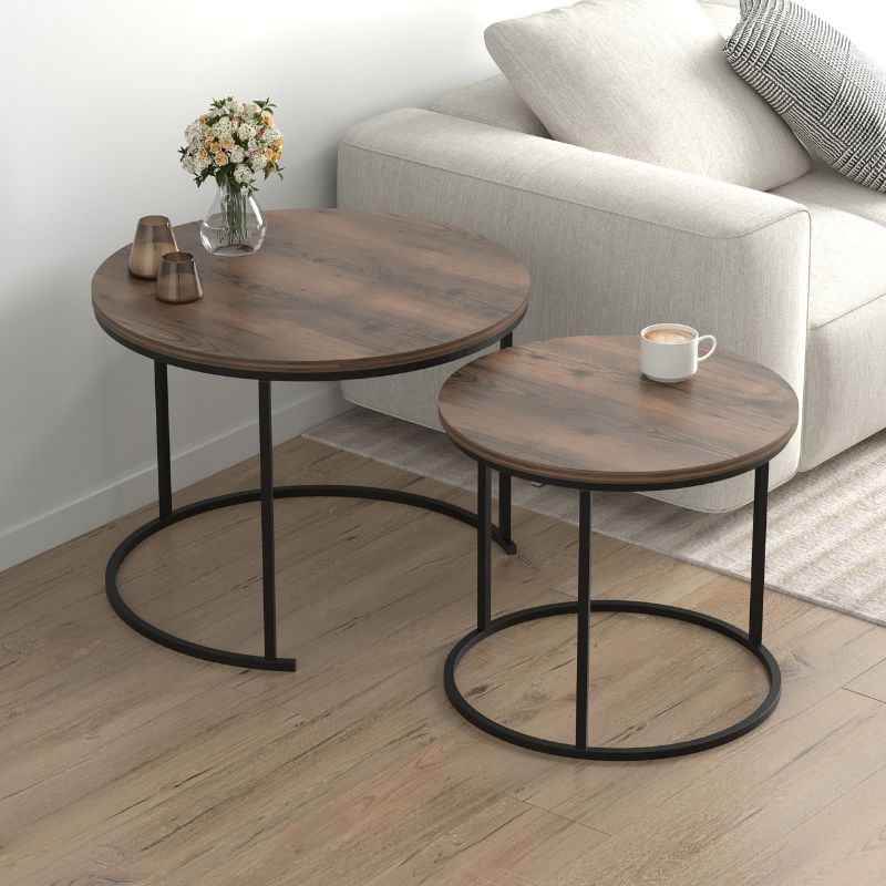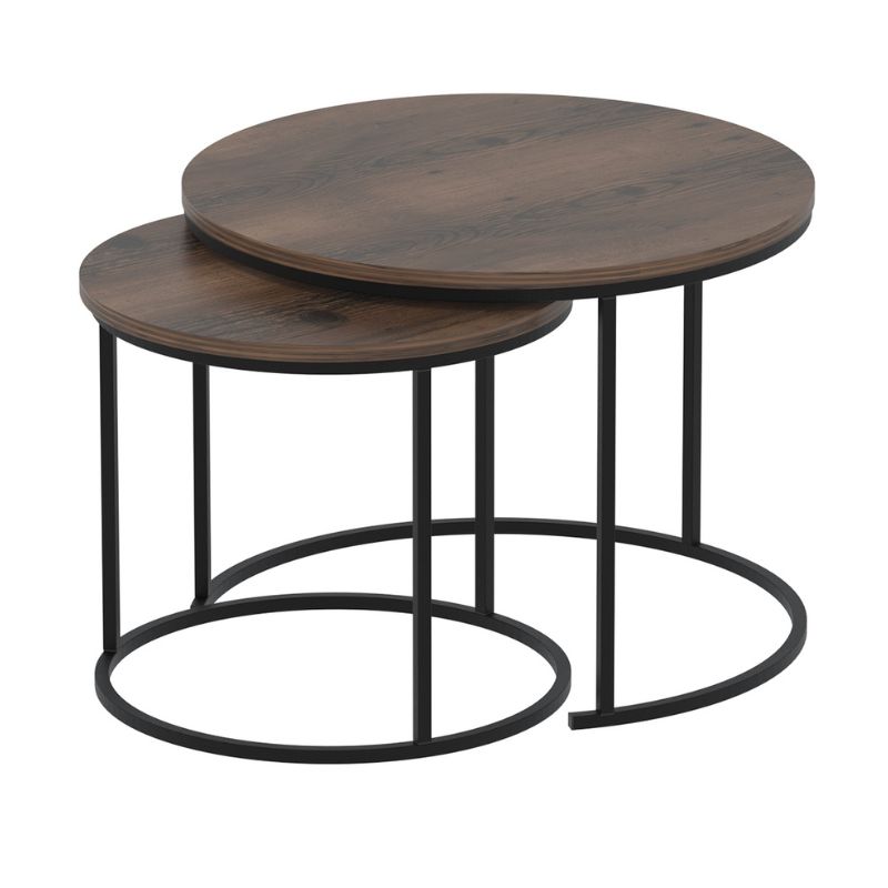 Τραπεζάκι σαλονιού σετ 2 τμχ Hilal Megapap χρώμα καπνιστή καρυδιά Ø66×49,5εκ.