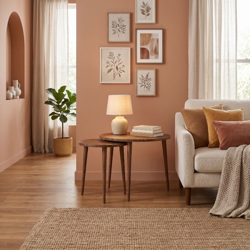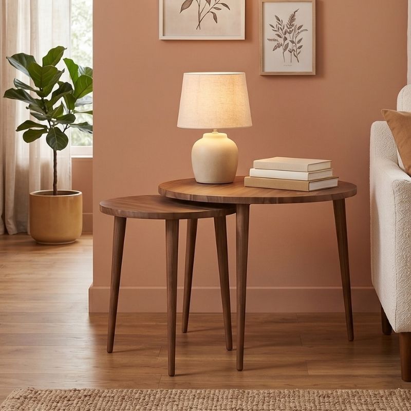 Τραπεζάκι σαλονιού σετ 2 τμχ Nola Megapap χρώμα καρυδί Ø60×46εκ.