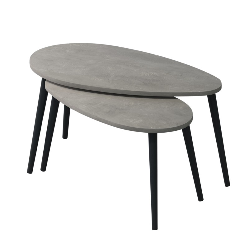 Τραπεζάκι σαλονιού σετ 2 τμχ Spline Megapap χρώμα γκρι ρετρό 80x40x46εκ.