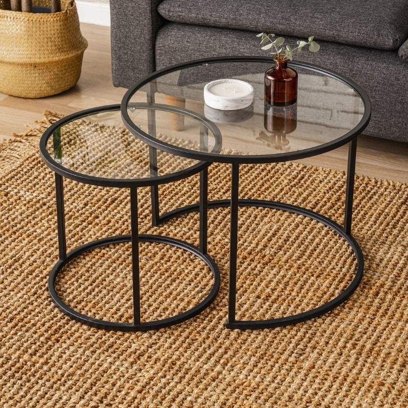 Τραπεζάκι σαλονιού σετ 2 τμχ Vetro Megapap μέταλλο – γυαλί χρώμα μαύρο Ø60×43εκ.