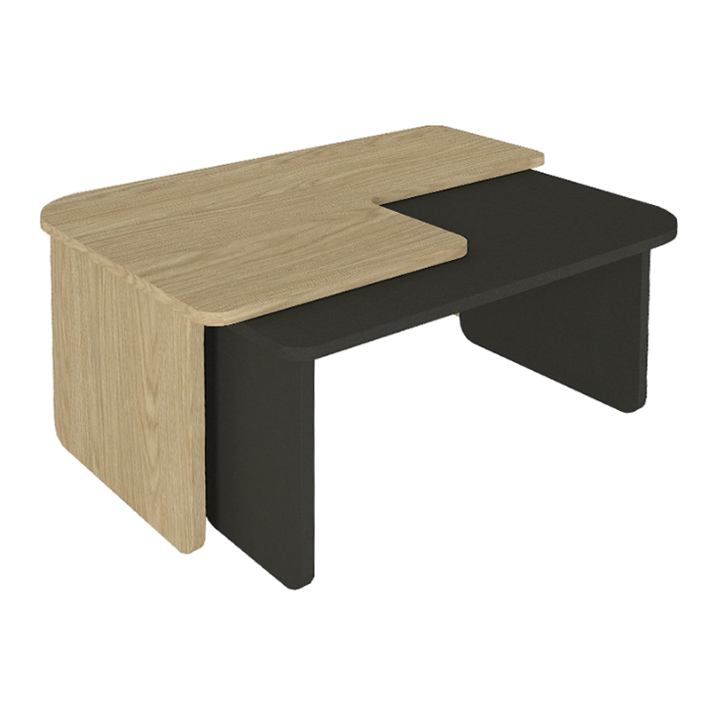 Τραπεζάκι σαλονιού σετ 2τμχ Lava Megapap χρώμα rota oak – ανθρακί 75×48,5×35,6εκ.