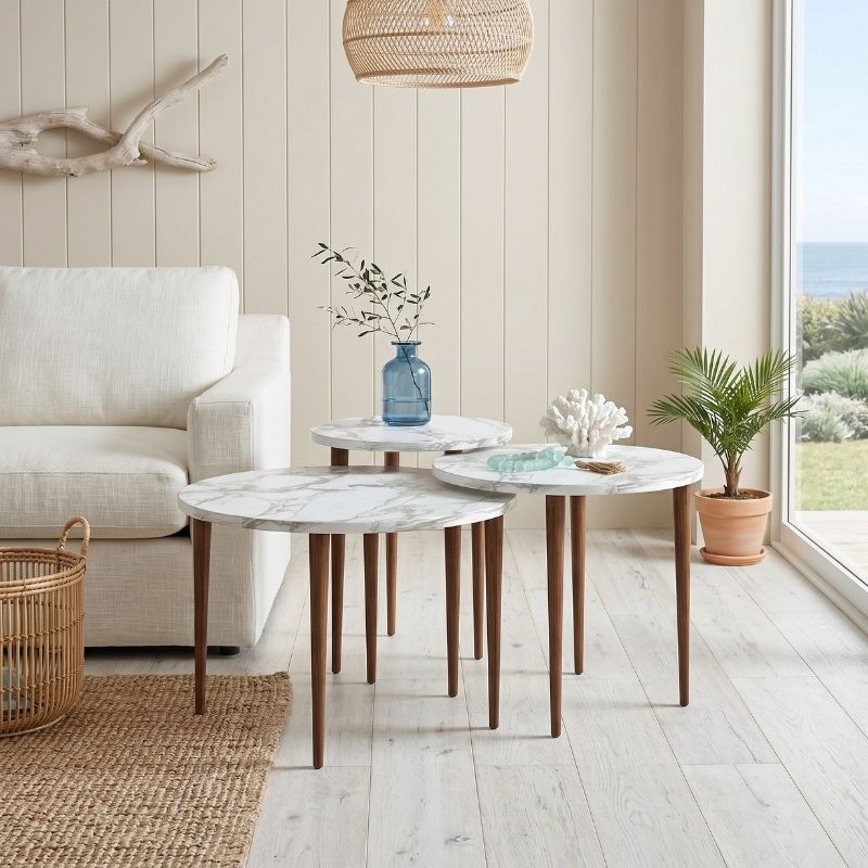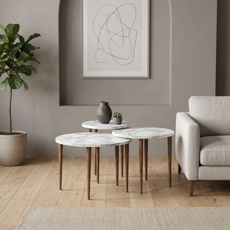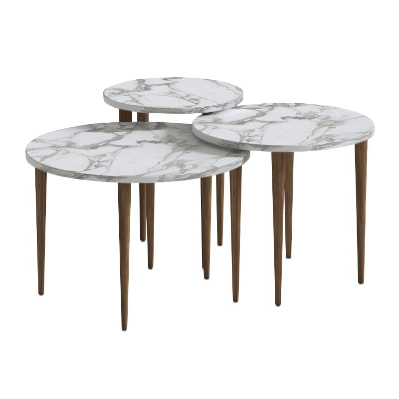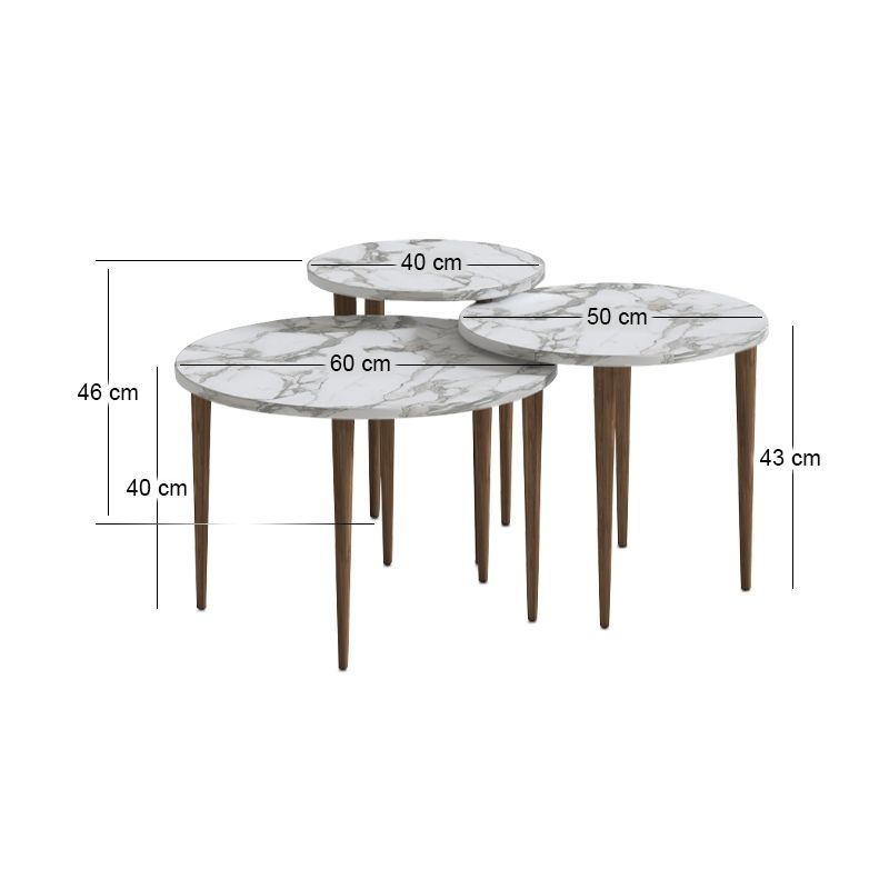 Τραπεζάκι σαλονιού σετ 3 τμχ Nola Megapap χρώμα λευκό εφέ μαρμάρου Ø60×46εκ.