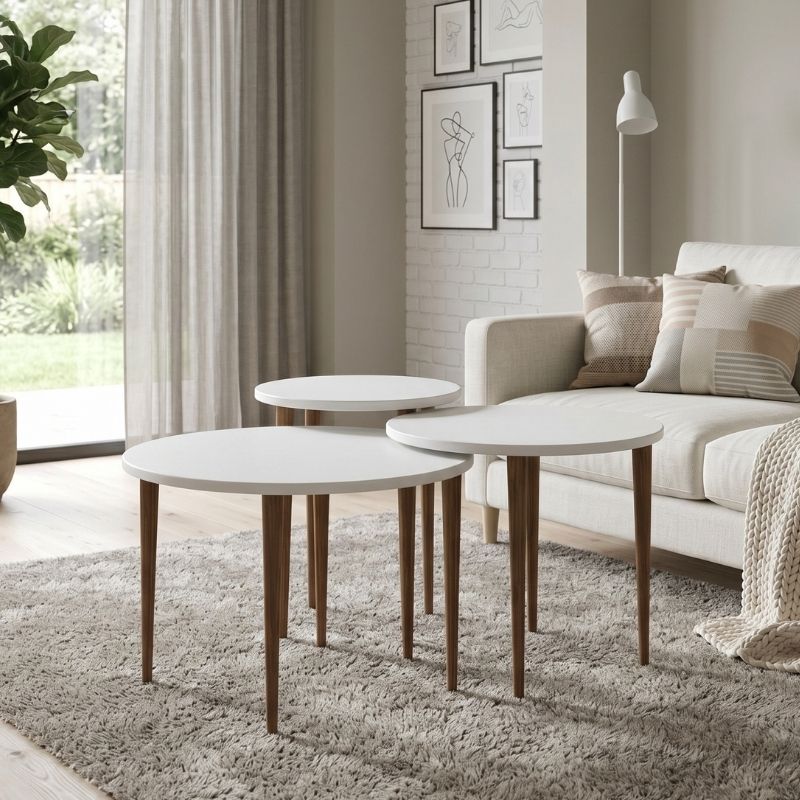Τραπεζάκι σαλονιού σετ 3 τμχ Nola Megapap χρώμα λευκό Ø60x46εκ. Τραπεζάκι σαλονιού σετ 3 τμχ N...