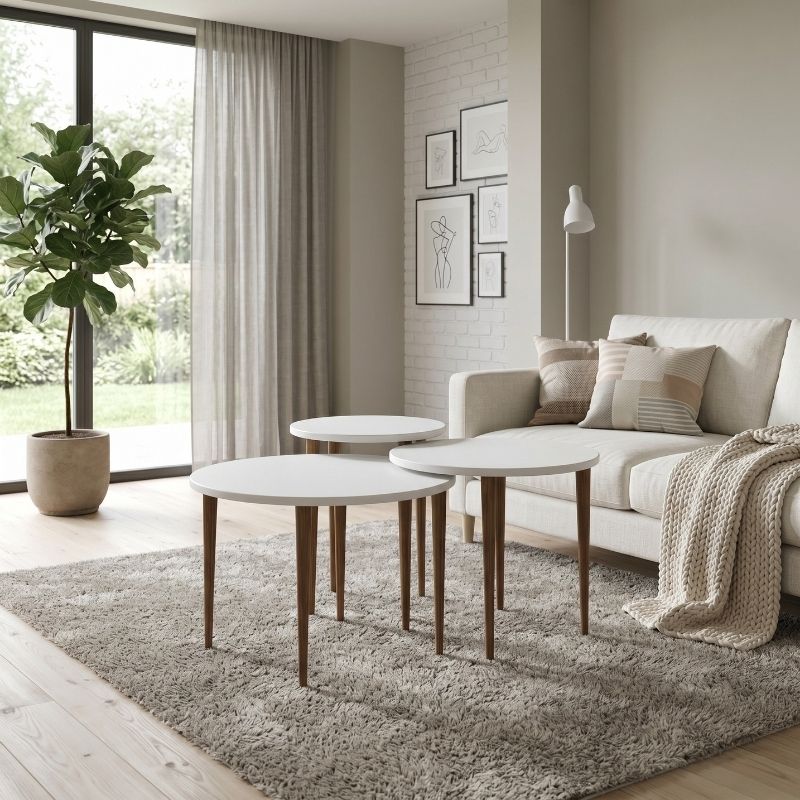 Τραπεζάκι σαλονιού σετ 3 τμχ Nola Megapap χρώμα λευκό Ø60×46εκ.