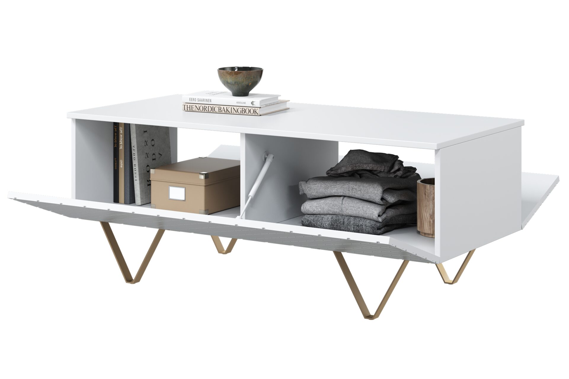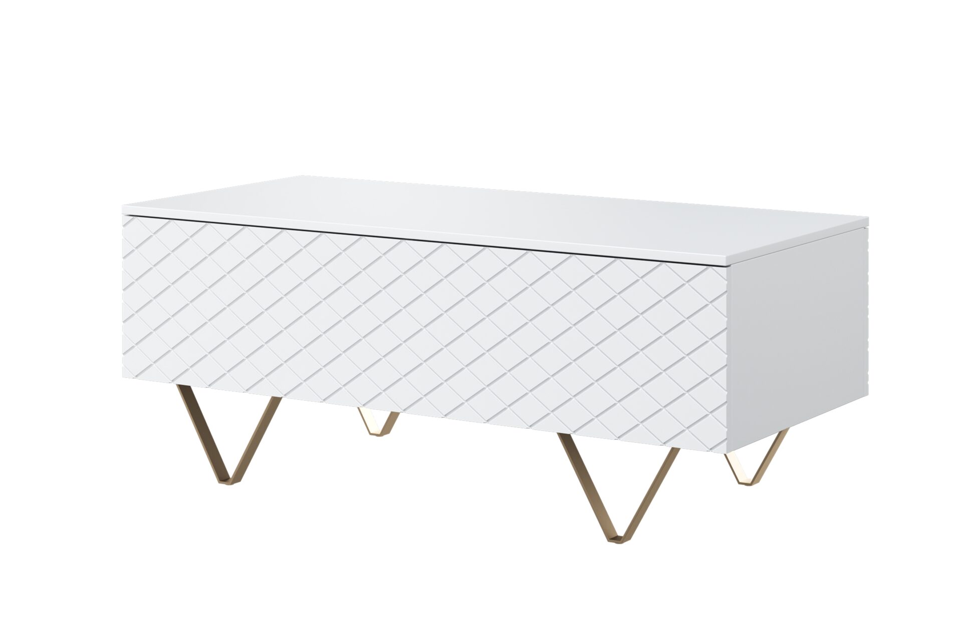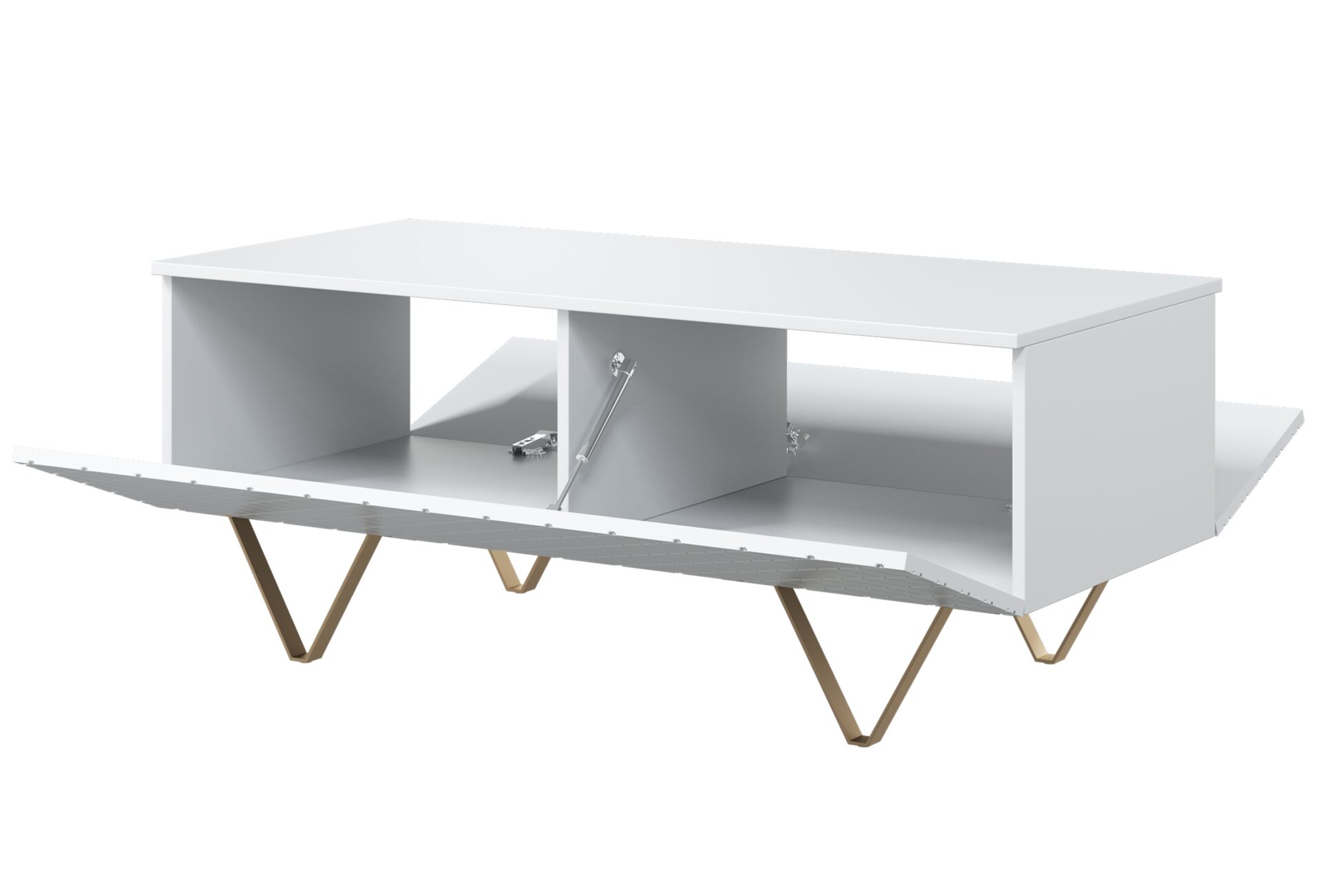 Τραπεζάκι Σαλονιού Sky Λευκό Ματ + Χρυσά Πόδια 120x48x55cm με αποθηκευτικό χώρο & τρίγωνα πόδια - BOG4589 Τραπεζάκι Σαλονιού Sky Λευκό Μ...