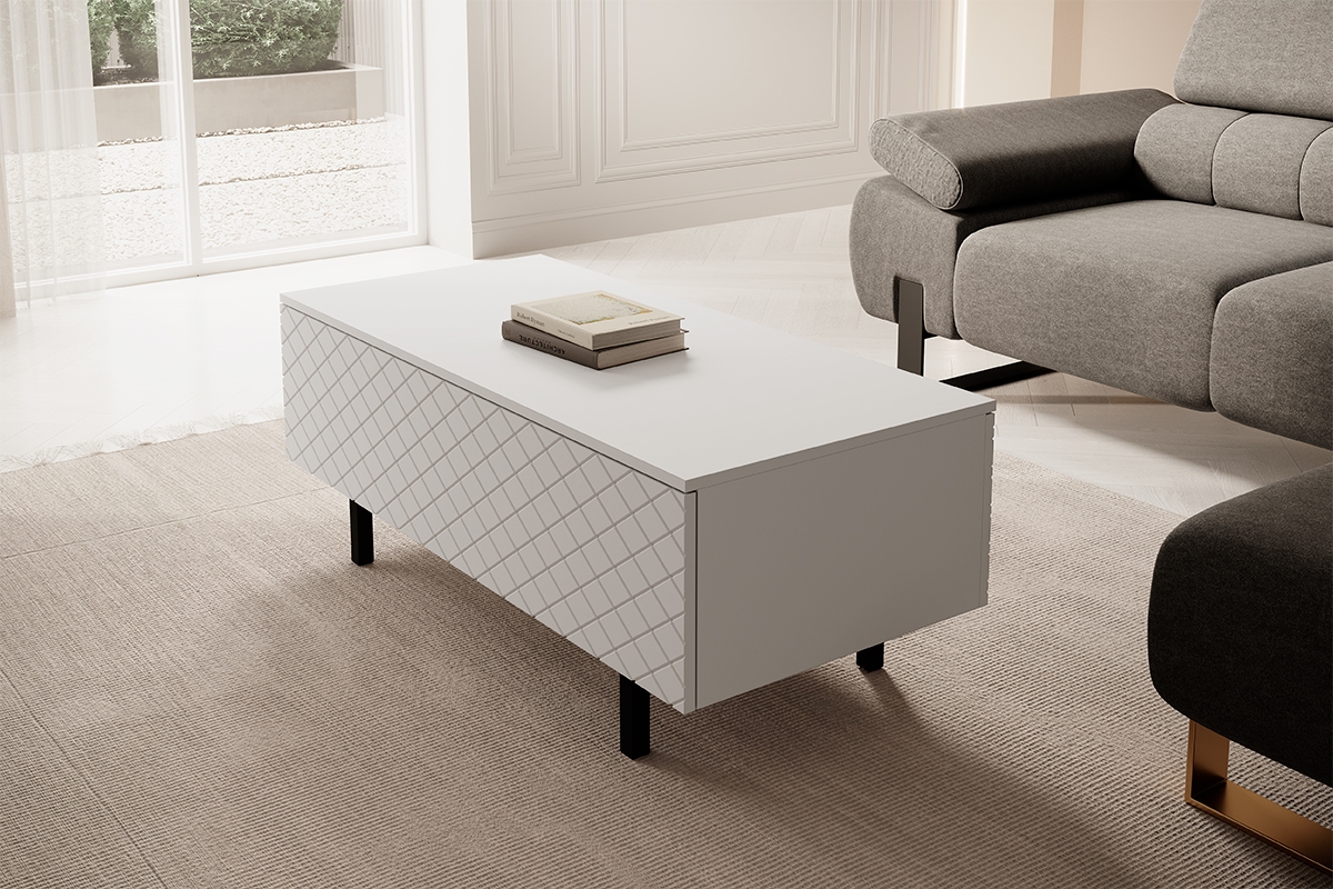 Τραπεζάκι Σαλονιού Sky Λευκό Ματ + Μαύρα Πόδια 120x46x55cm με αποθηκευτικό χώρο - BOG4589 Τραπεζάκι Σαλονιού Sky Λευκό Μ...
