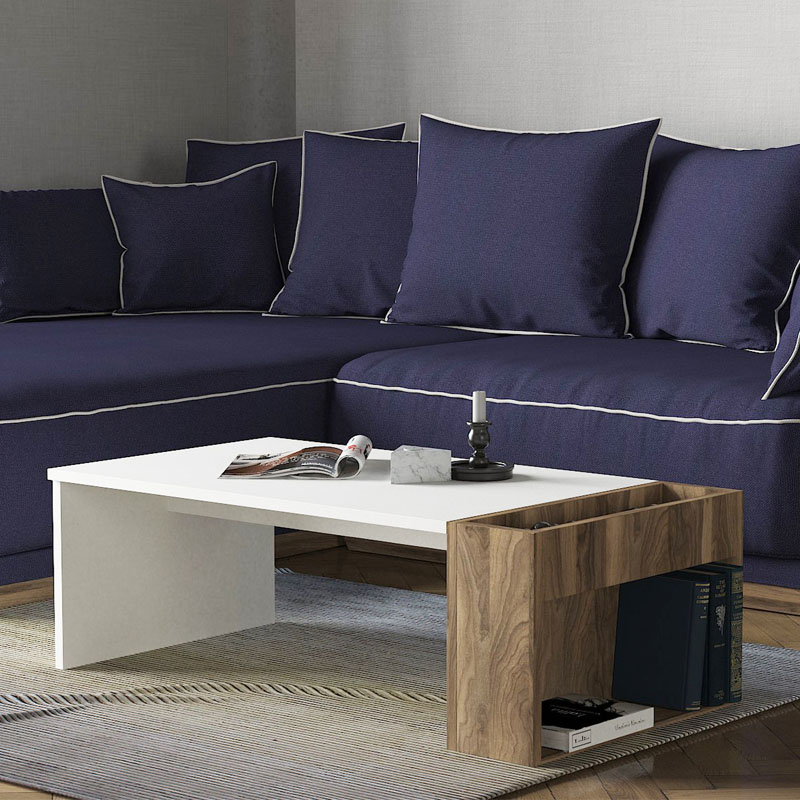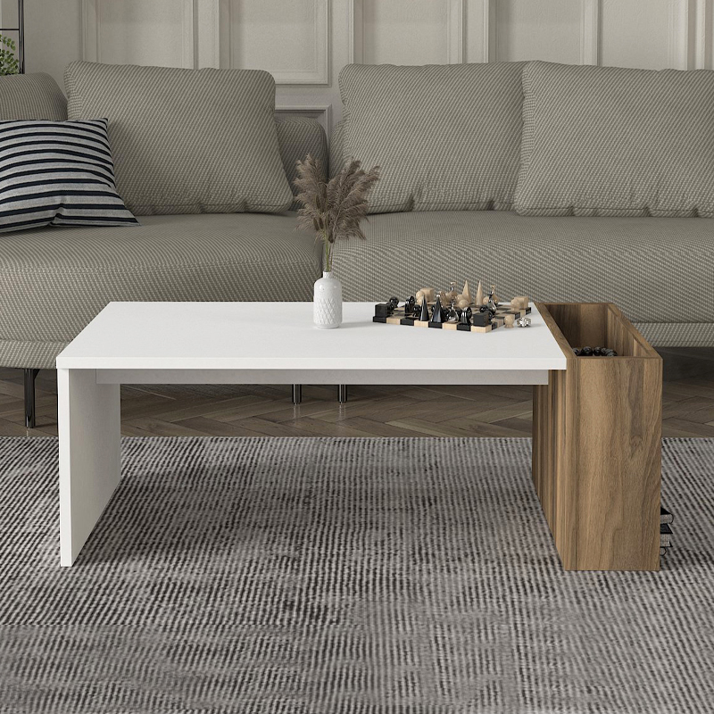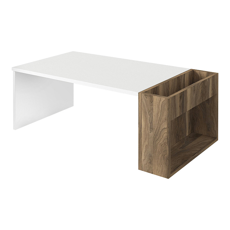 Τραπεζάκι σαλονιού View Megapap από μελαμίνη χρώμα λευκό – καρυδί 95x50x34εκ.