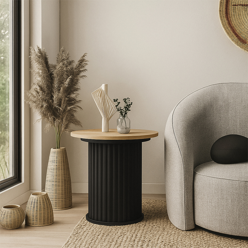 Τραπεζάκι βοηθητικό Bohema Megapap χρώμα μαύρο – sepet oak Ø50×53,2εκ.