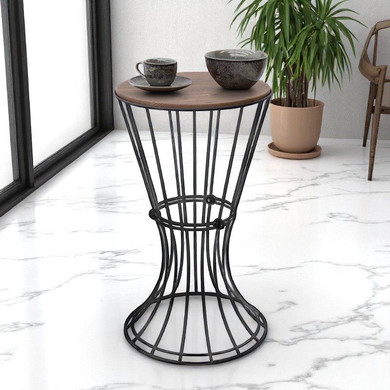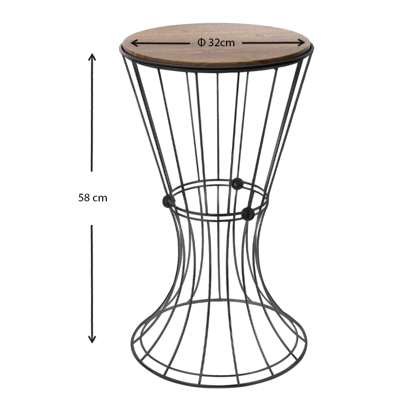 Βοηθητικό τραπεζάκι Girene Megapap μεταλλικό – Mdf χρώμα μαύρο – καρυδί 32x32x58εκ.