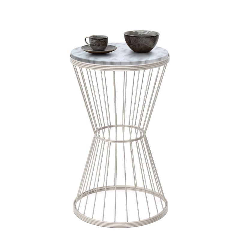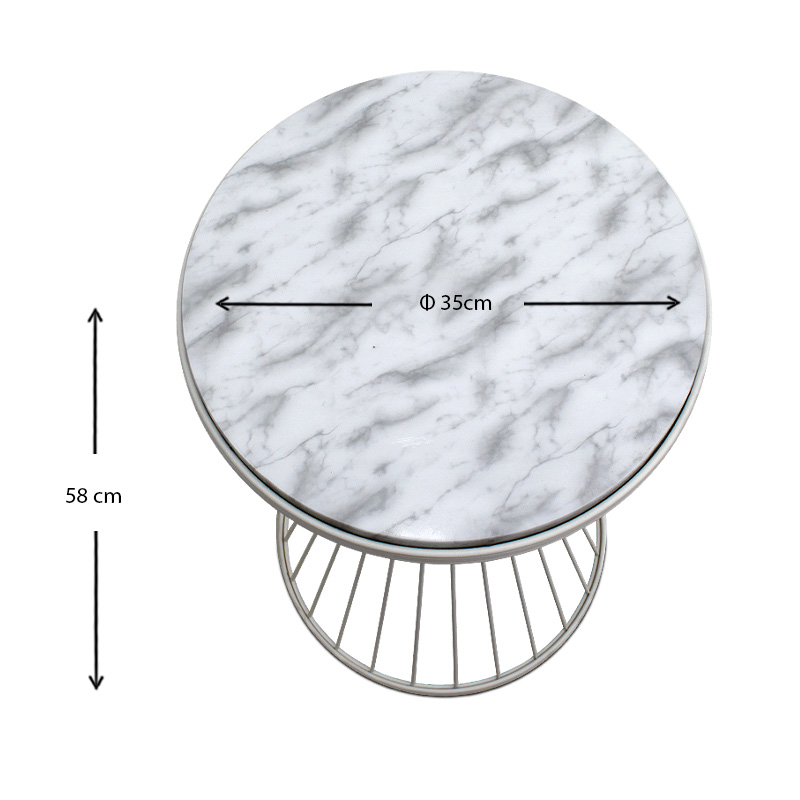 Βοηθητικό τραπεζάκι Hoffman Megapap μεταλλικό – Mdf χρώμα λευκό – λευκό εφέ μαρμάρου 35x35x58εκ.