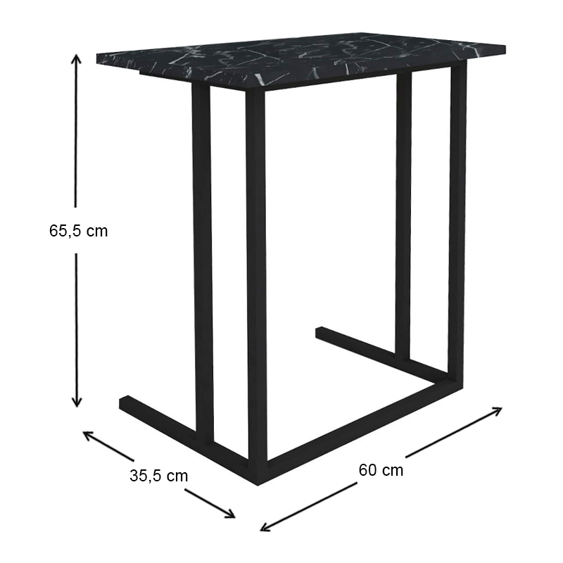 Βοηθητικό τραπεζάκι Jango Megapap μεταλλικό – μελαμίνης χρώμα μαύρο εφέ μαρμάρου 60×35,5×65,5εκ.