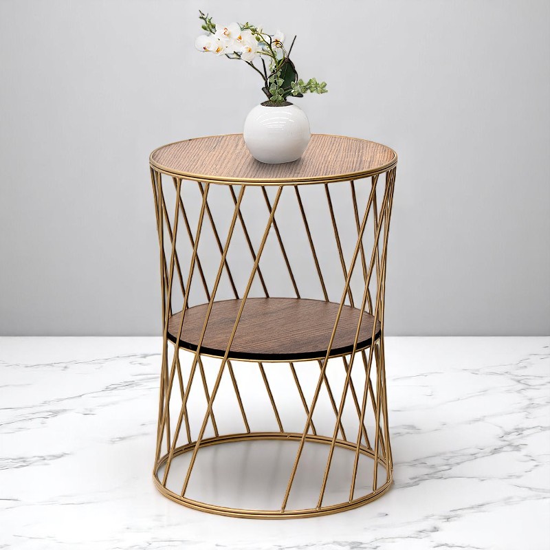 Βοηθητικό τραπεζάκι Jaspin Megapap μεταλλικό – Mdf χρώμα χρυσό – καρυδί 32x32x44εκ.