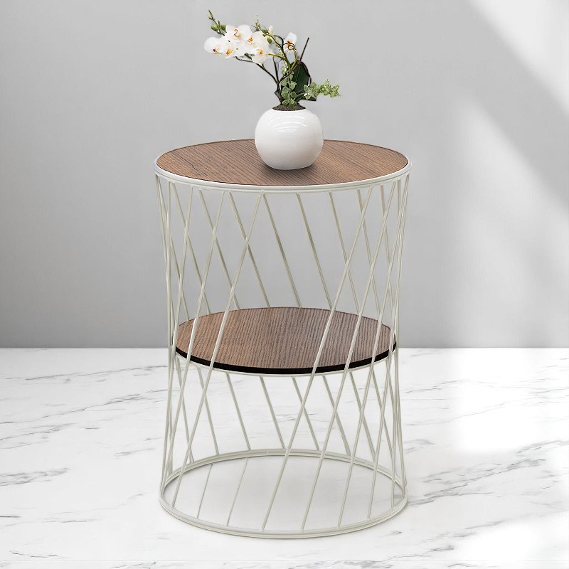 Βοηθητικό τραπεζάκι Jaspin Megapap μεταλλικό – Mdf χρώμα λευκό – καρυδί 32x32x44εκ.