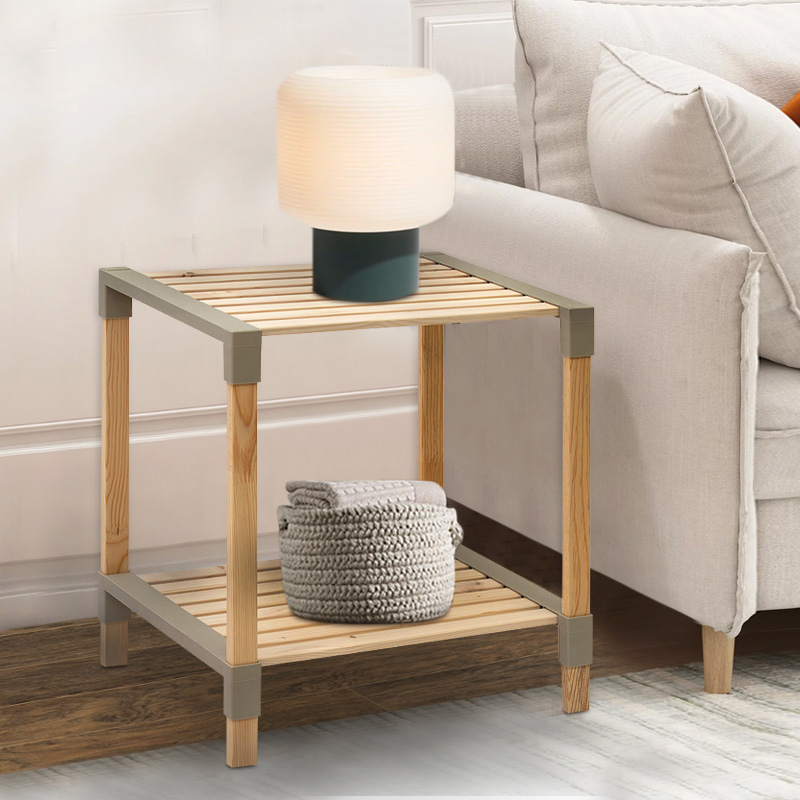Τραπεζάκι βοηθητικό – κομοδίνο ξύλινο – πλαστικό χρώμα φυσικό – μπεζ 41x33x45εκ.