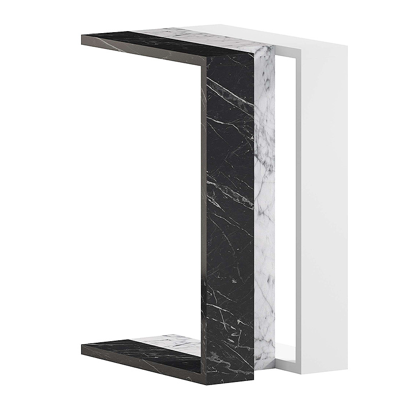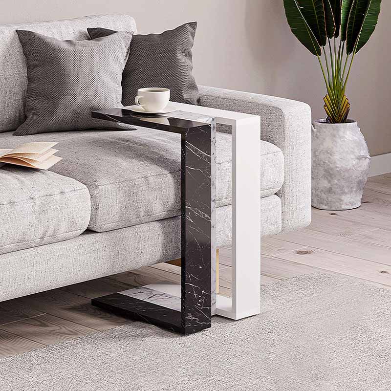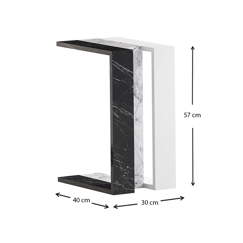 Τραπεζάκι βοηθητικό Muju Megapap μελαμίνης χρώμα μαύρο – λευκό εφέ μαρμάρου/λευκό 30x40x57εκ.