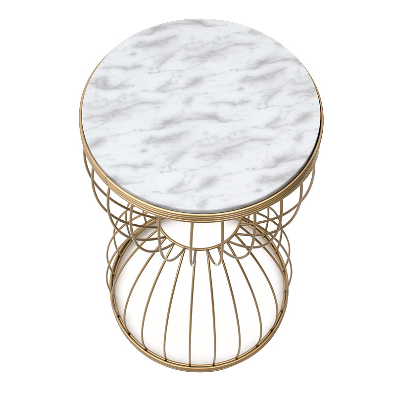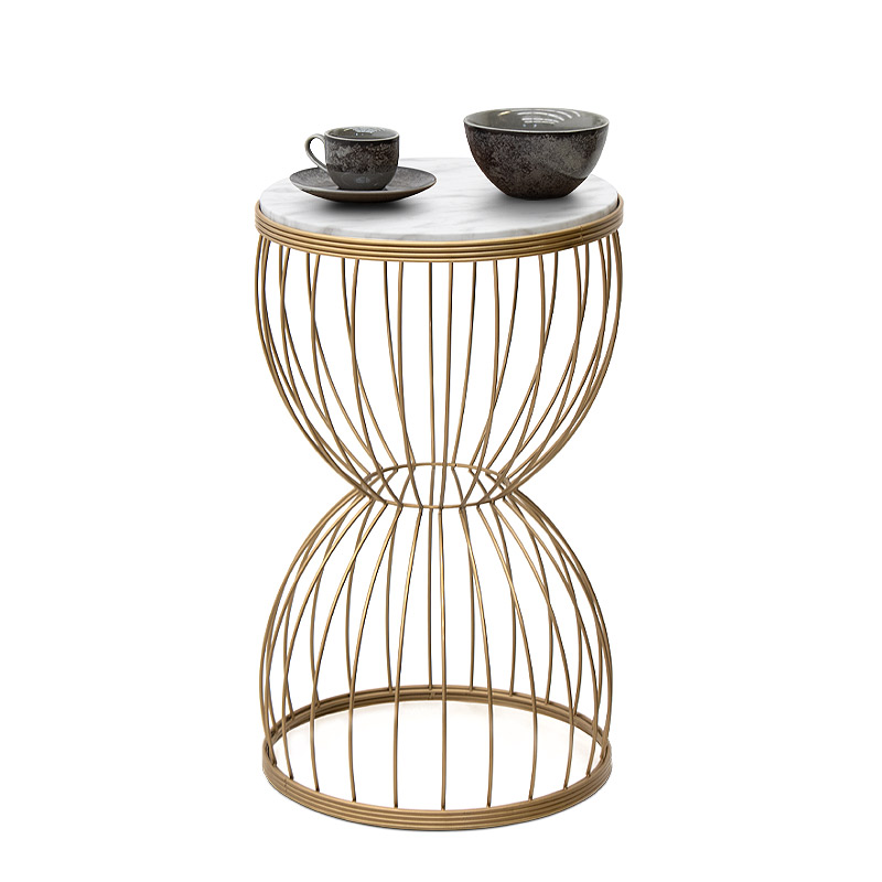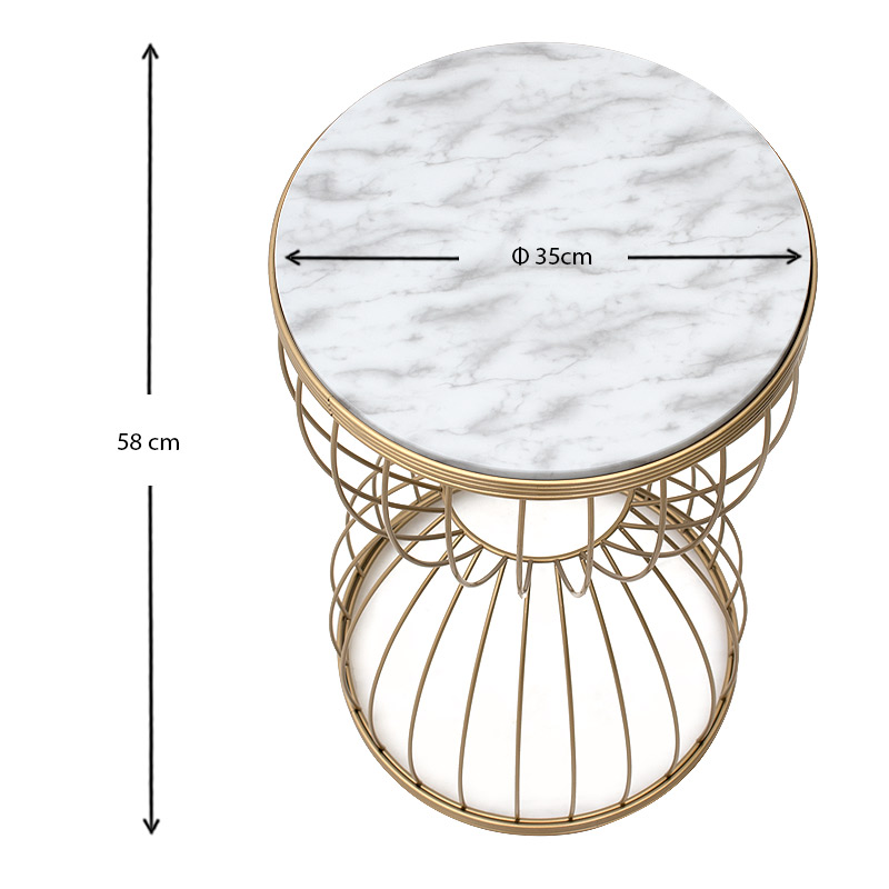 Βοηθητικό τραπεζάκι Pino Megapap μεταλλικό – Mdf χρώμα χρυσό – λευκό εφέ μαρμάρου 35x35x58εκ.
