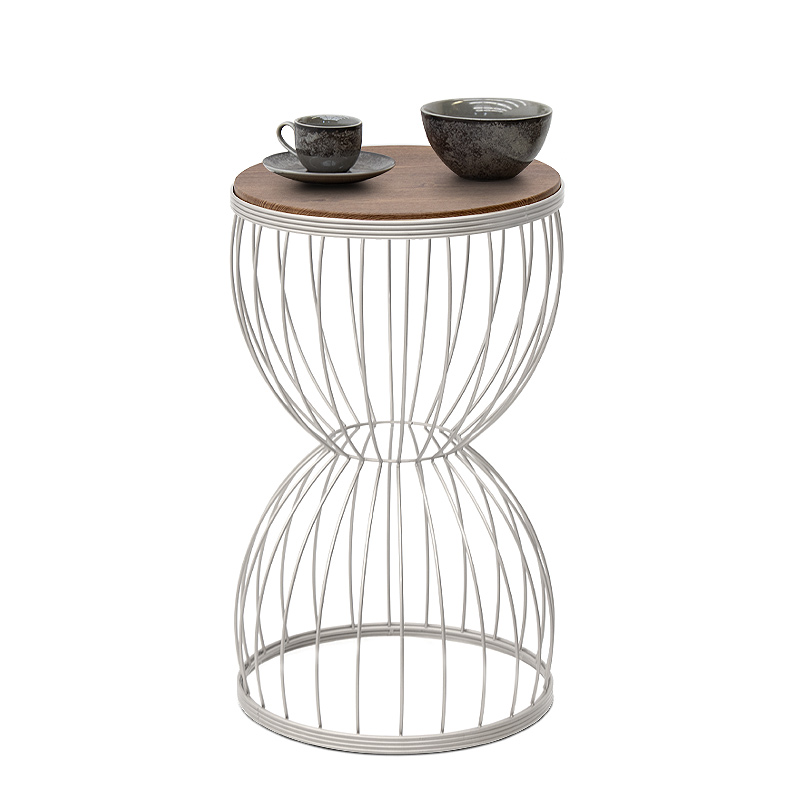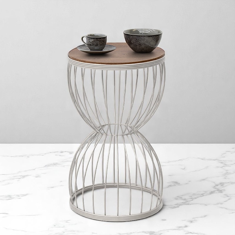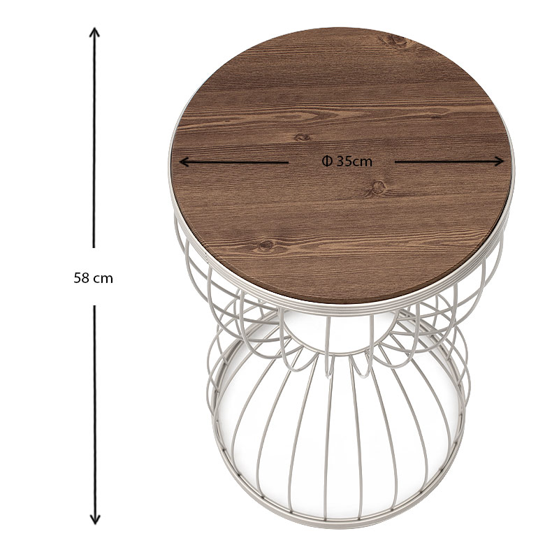 Βοηθητικό τραπεζάκι Pino Megapap μεταλλικό – Mdf χρώμα λευκό – καρυδί 35x35x58εκ.