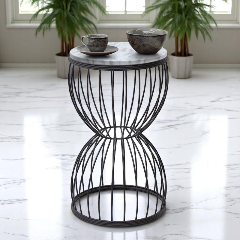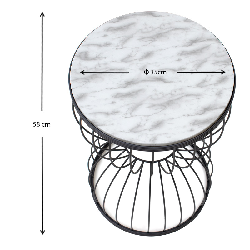 Βοηθητικό τραπεζάκι Pino Megapap μεταλλικό – Mdf χρώμα μαύρο – λευκό εφέ μαρμάρου 35x35x58εκ.