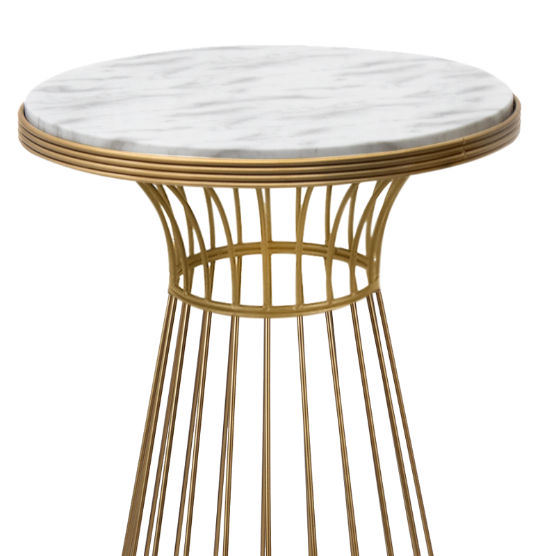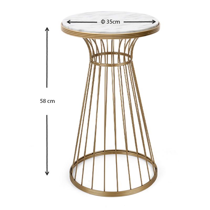 Βοηθητικό τραπεζάκι Tekosi Megapap μεταλλικό – Mdf χρώμα χρυσό – λευκό εφέ μαρμάρου 35x35x58εκ.