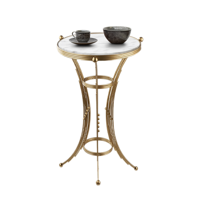 Βοηθητικό τραπεζάκι Venezia Megapap μεταλλικό – Mdf χρώμα χρυσό – λευκό εφέ μαρμάρου 35x35x59εκ.