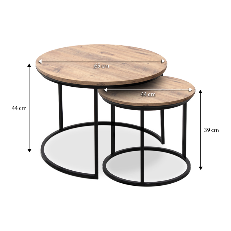 Τραπεζάκια σαλονιού Gary Megapap Mdf – μεταλλικό χρώμα ακακίας 65x65x44εκ.