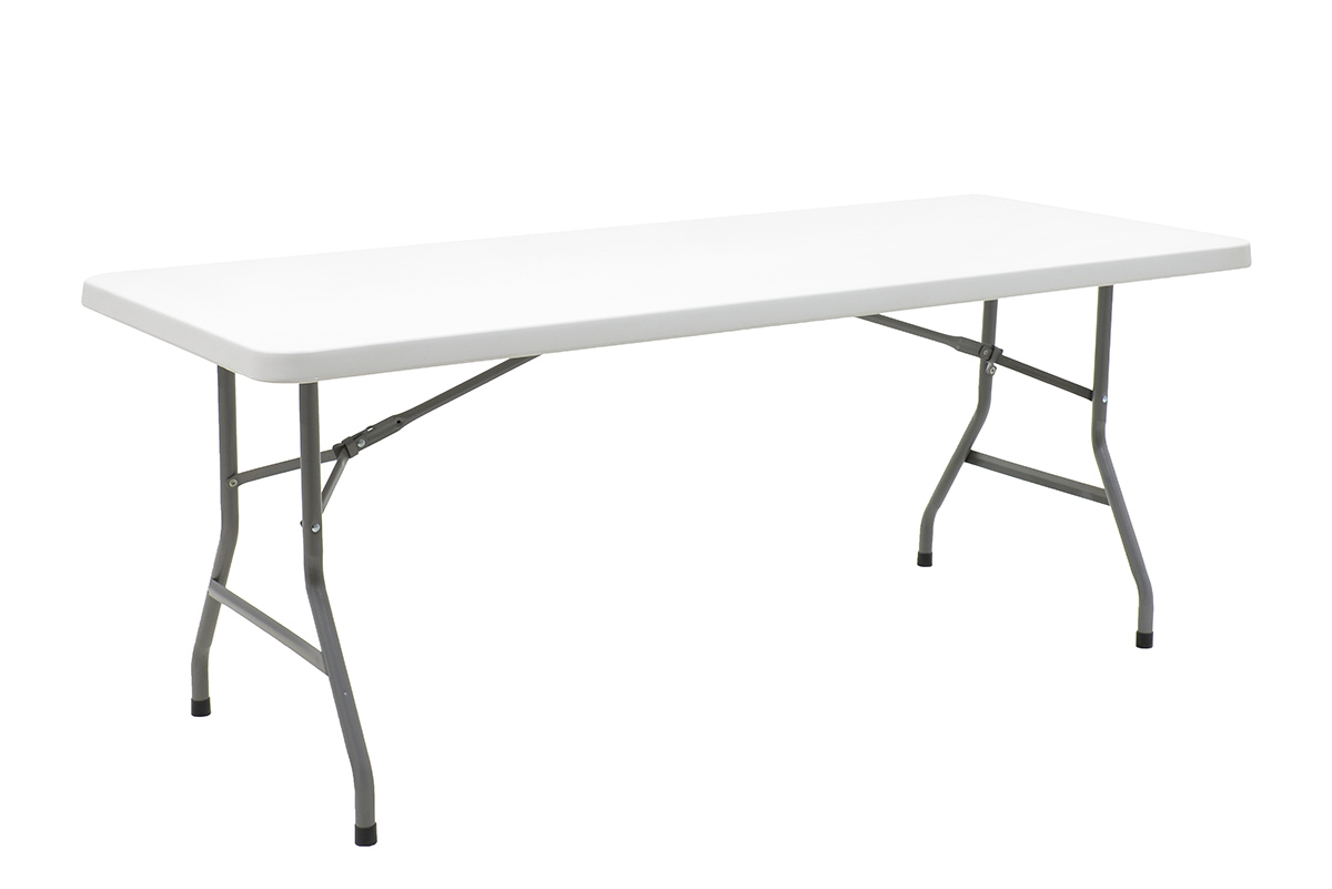 Τραπέζι πτυσσόμενο Aprilia (catering – συνεδρίου) ορθογώνιο με μεταλλική βάση χρώμα λευκού-γρανίτι / γκρι 183x76x74εκ