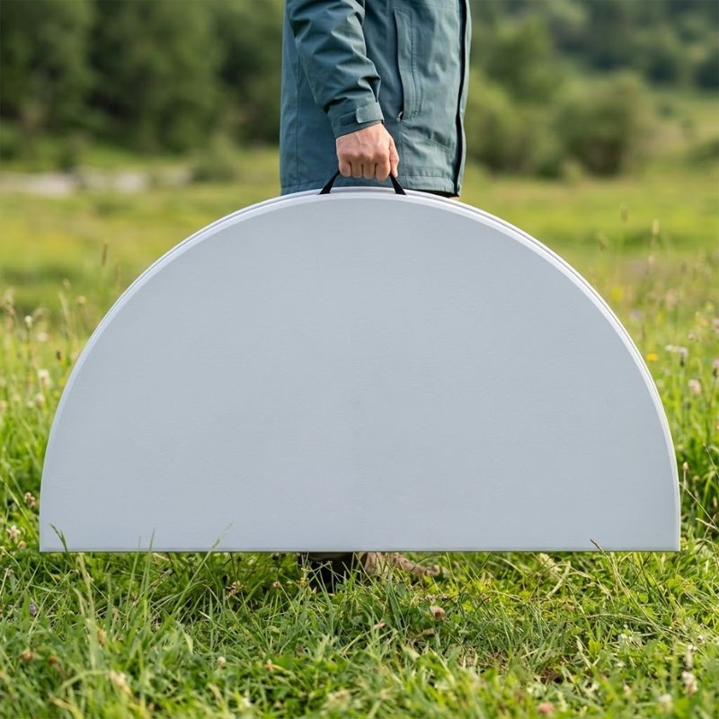 • Στρογγυλή επιφάνεια κατασκευασμένη από πολυαιθυλένιο υψηλής πυκνότητας (HDPE), ιδιαίτερα ανθεκτικό υλικό που προσφέρει μεγάλη αντοχή στη φθορά, την υγρασία και την καθημερινή χρήση.