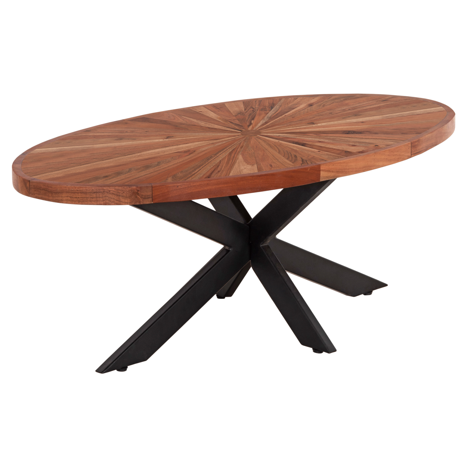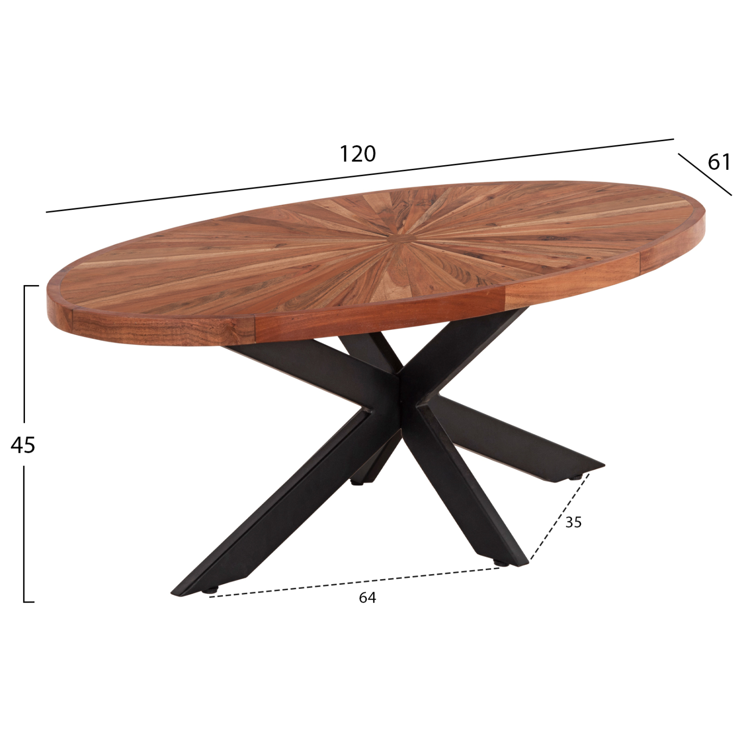 Ανακαλύψτε αυτό το μοναδικό οβάλ τραπέζι σαλονιού με επιφάνεια από φυσικό μασίφ ξύλο ΑΚΑΚΙΑΣ σε ΦΥΣΙΚΟ χρώμα. Διαθέτει πόδια σε όμορφη χιαστί διάταξη σε ΜΑΥΡΟ χρώμα. Το μοντέρνο design συναντά την φύση και δίνει μια διαχρονική και ζεστή αίσθηση στον χώρο σας, ενώ ταυτόχρονα αποτελεί κι ένα έπιπλο ανώτερης ποιότητας και συμβολισμού.