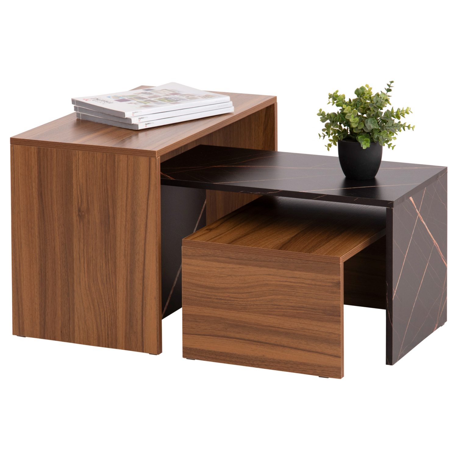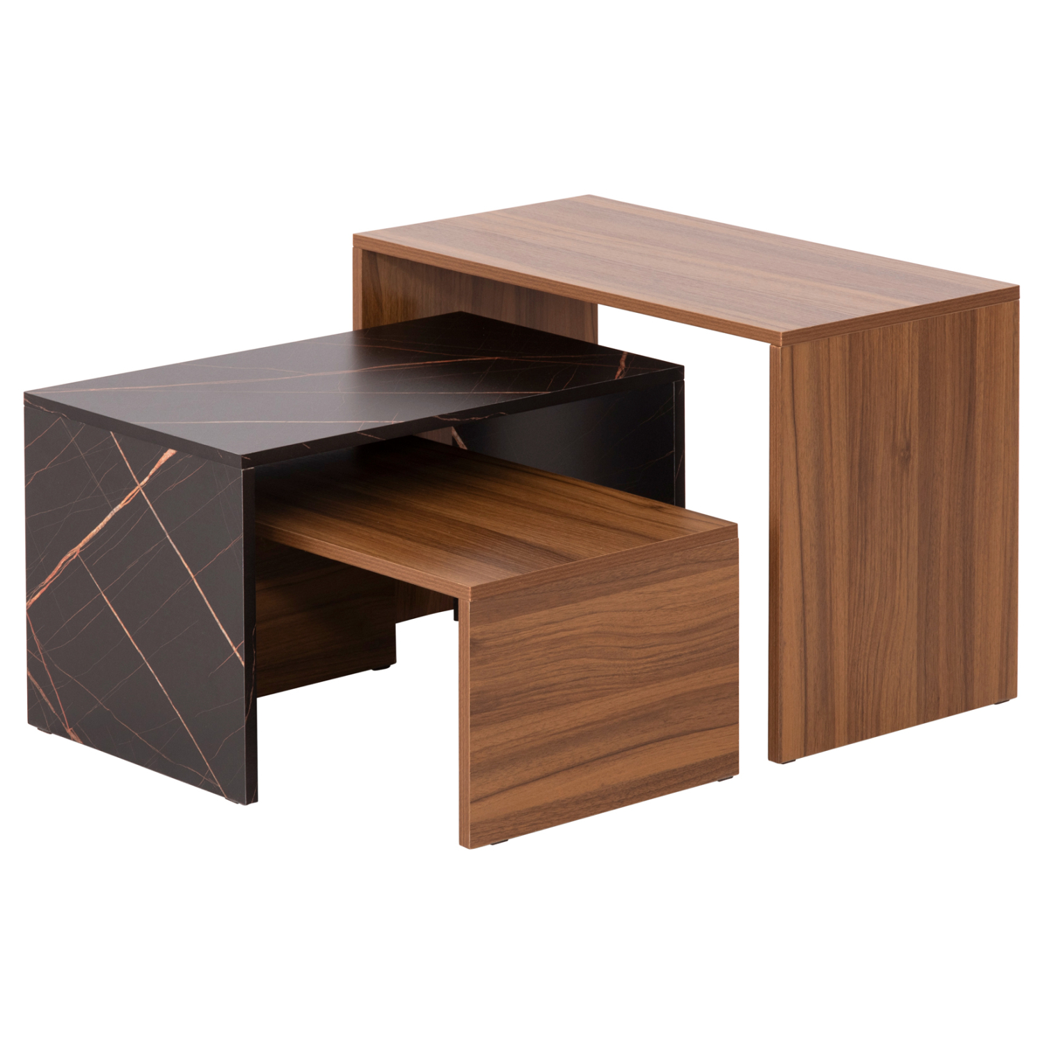 Με τα τραπεζάκια ζιγκόν BENTIL μπορείτε να δημιουργήσετε πρωτότυπες διακοσμητικές συνθέσεις, δίνοντας νέα πνοή στον χώρο σας. Πρόκειται για 3 τραπεζάκια μελαμίνης εκ των οποίων 2 σε χρώμα ΚΑΡΥΔΙ και ένα σε χρώμα ΜΑΥΡΟ ΜΑΡΜΑΡΟ. Το εντυπωσιακό στοιχείο αυτού του σετ είναι ότι το στήσιμο κι η τοποθέτηση τους δίνουν την εντύπωση ενός ενιαίου τραπεζιού σαλονιού.
