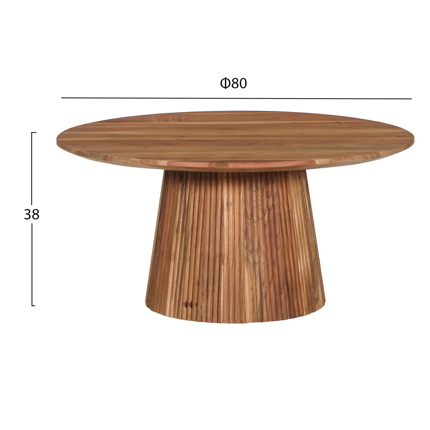 Το GROOT είναι ένα στρογγυλό τραπέζι για το σαλόνι σε μεγάλη διάσταση σε φυσικό χρώμα ξύλου. Η επιφάνεια του τραπεζιού στηρίζεται σε μια ξύλινη κολώνα στο κέντρο με κωνικό σχήμα. Αυτό το τραπέζι θα αναβαθμίσει αισθητικά το σαλόνι σας ενώ μπορεί να ταιριάξει με πολλά διαφορετικά στυλ και χρώματα στον τριγύρω χώρο.