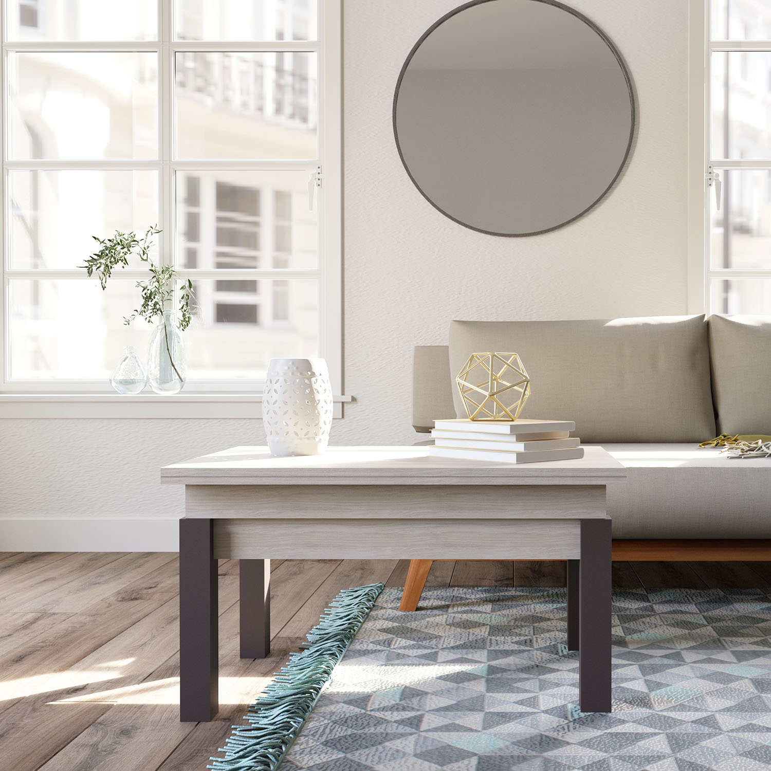 Tραπέζι σαλονιού Transformer, εξαιρετικής ποιότητας και υψηλής αντοχής, σε απόχρωση σπασμένου λευκού.