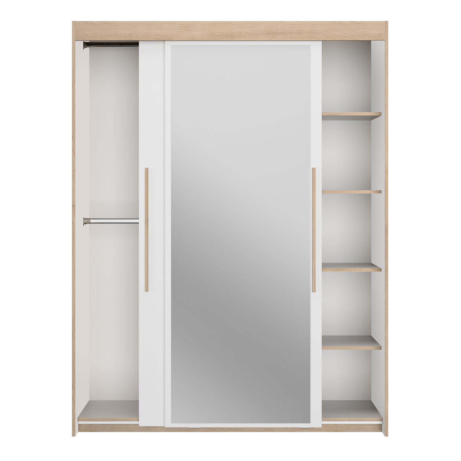 Η ντουλάπα Tulle διαθέτει δύο συρόμενες πόρτες η μία από τις οποίες διαθέτειο καθρέφτη. Οι διαστάσεις της είναι 153×60εκ. ( ύψος 200εκ. ) και το χρώμα της λευκό με blond oak λεπτομέρειες. Η ντουλάπα Tulle είναι γαλλικής κατασκευής. Συνδυάστε την με τα υπόλοιπα έπιπλα της σειράς Tulle.