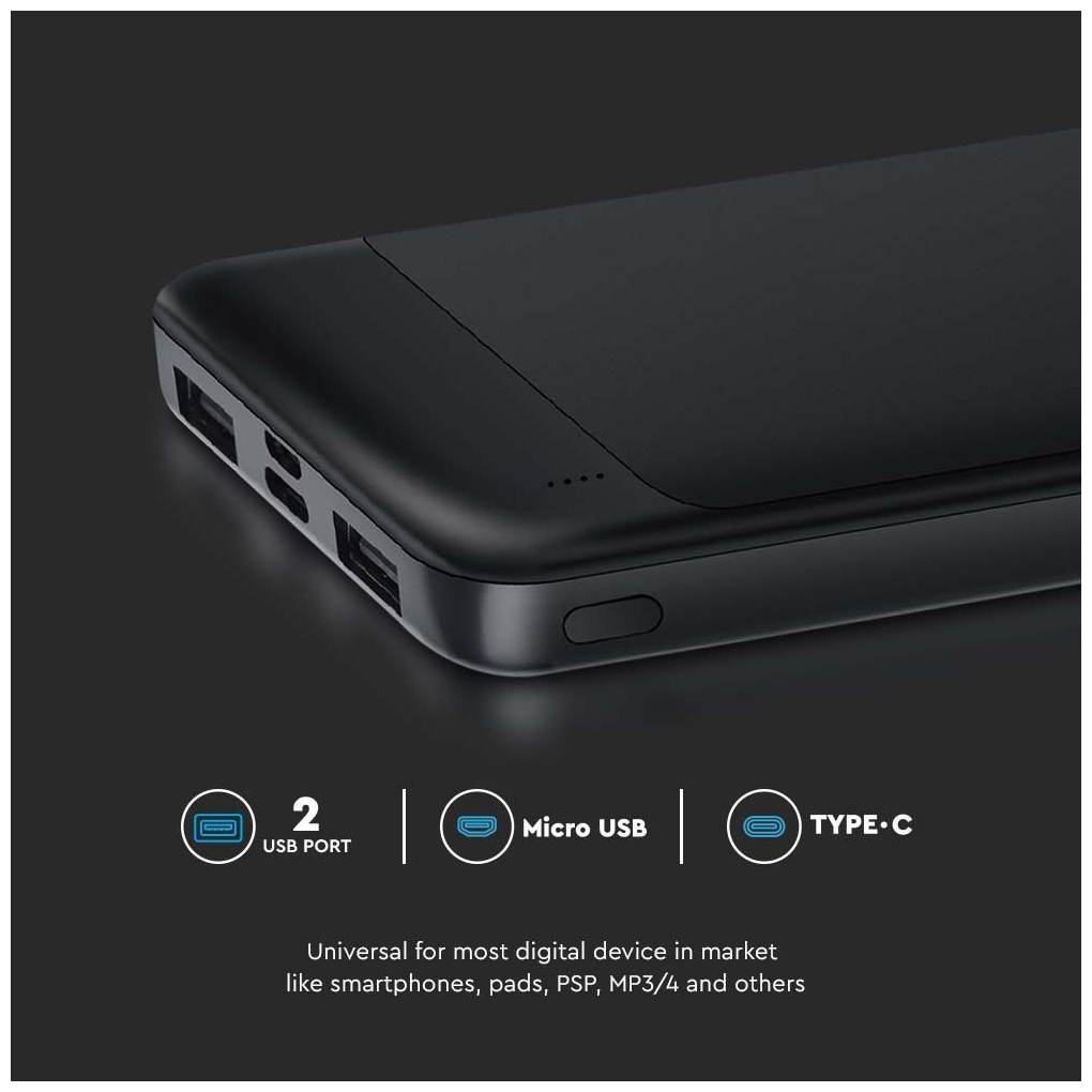 V-TAC 7833 Power Bank 10000mAh με Θύρα USB-A και Θύρα USB-C Μαύρο
