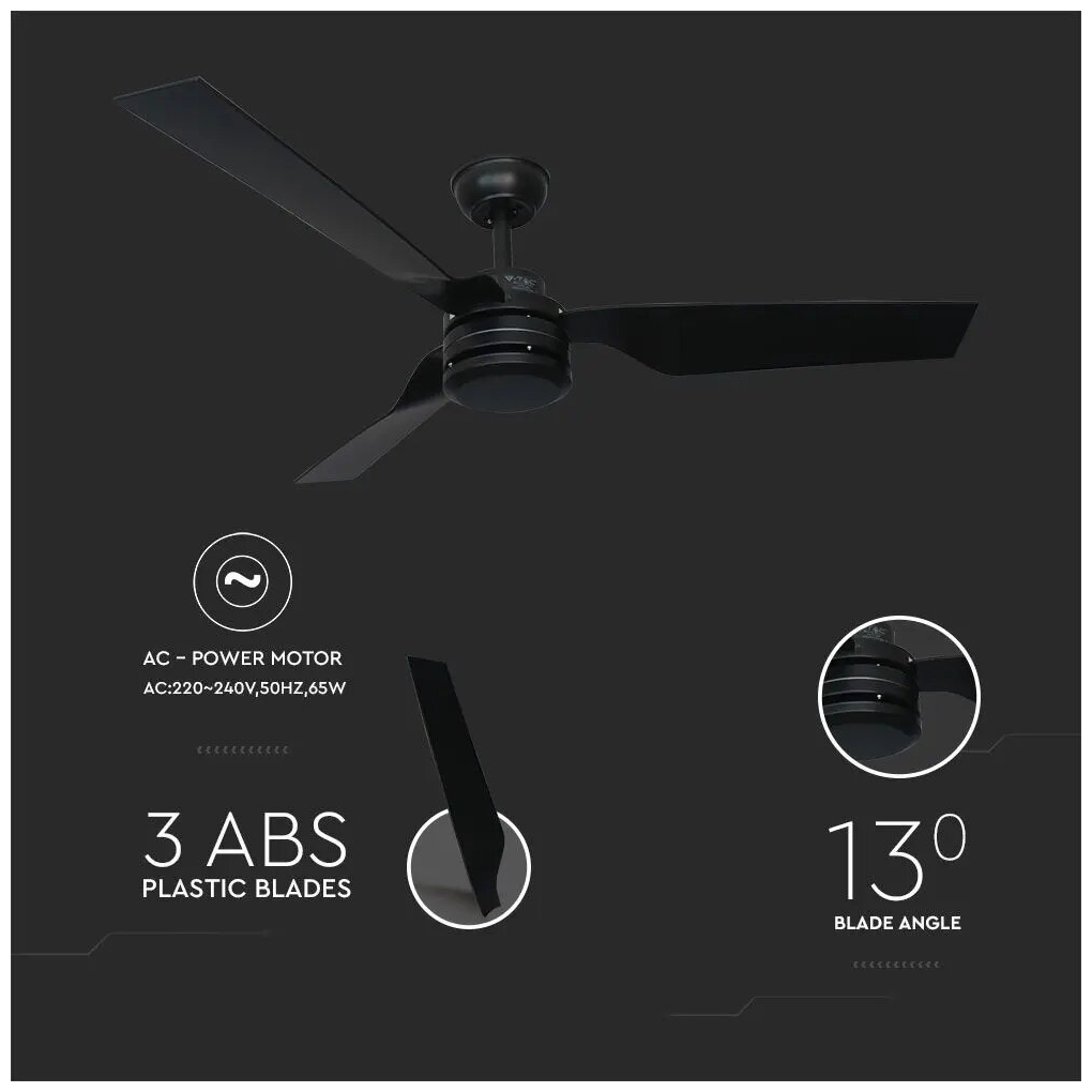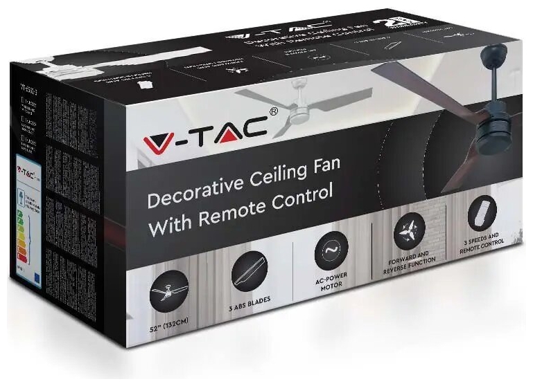 - Διακοσμητικός ανεμιστήρας οροφής 65W, 52 ιντσών (132cm)
