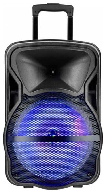 • Επαναφορτιζόμενο ηχείο Trolley 12 ιντσών σχεδιασμένο με τροχούς .