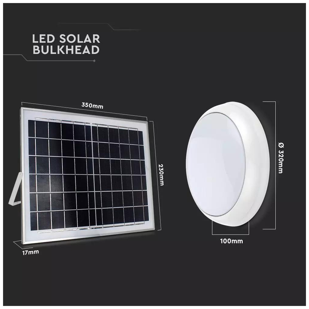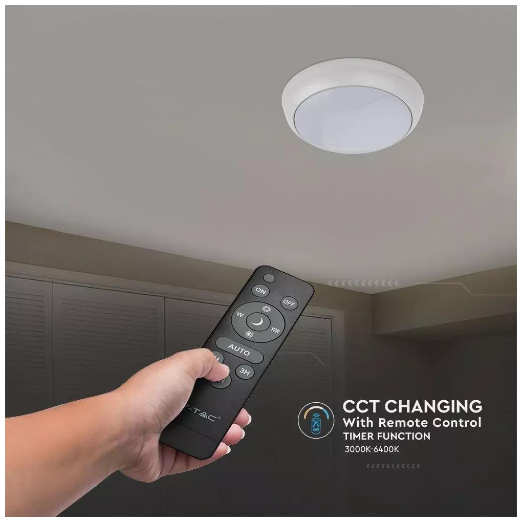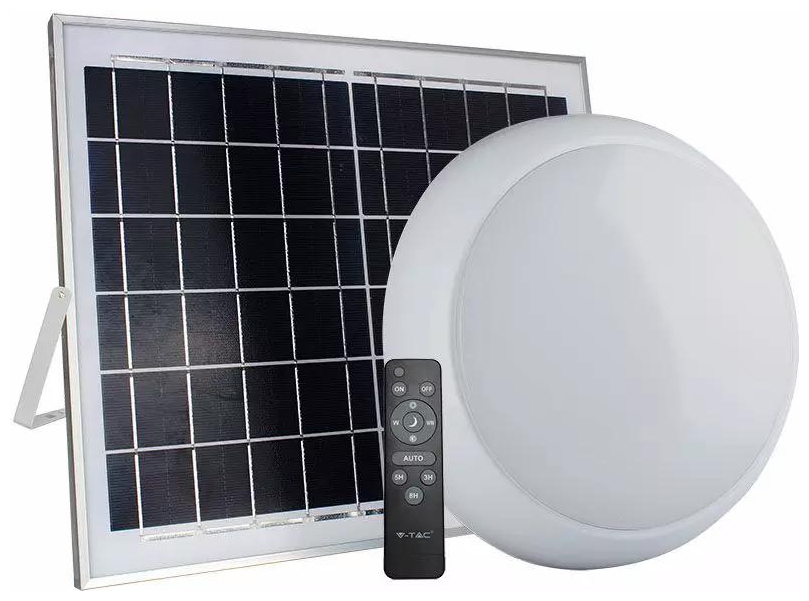 Ηλιακή Πλαφονιέρα/Απλίκα LED SMD 15W 900lm Αδιάβροχη IP65 Στρογγυλή CCT 3σε1 με Χειριστήριο RF Άσπρο Σώμα 7613 V-TAC