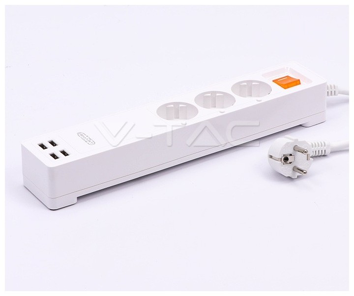 V-TAC Έξυπνο Πολύπριζο 3 Θέσεων με Διακόπτη & Θύρες USB Συμβατό με V-TAC Smart Home Amazon Alexa και Google Home