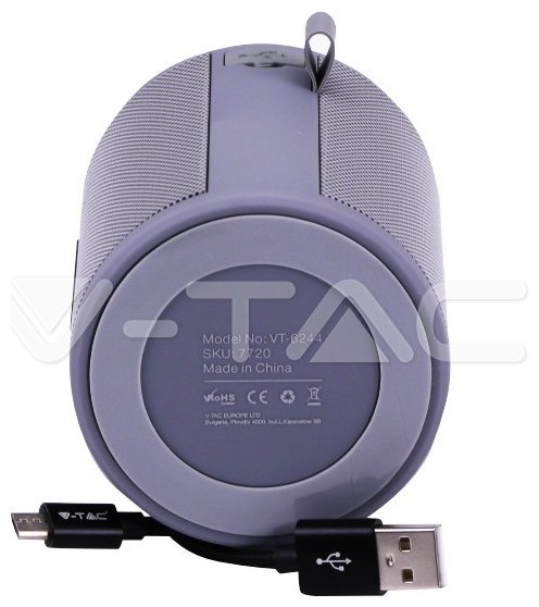 V-TAC Φορητό Ηχείο Bluetooth 5W Επαναφορτιζόμενο 1500mah Γκρι 7720 V-TAC Φορητό Ηχείο Bluetooth 5...