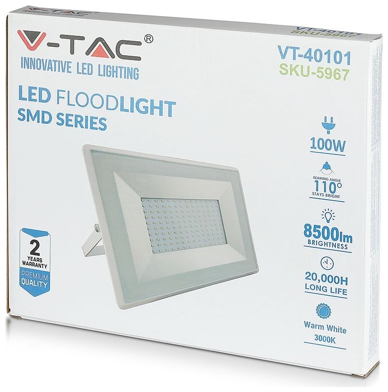 V-TAC LED Προβολέας E-Series SMD 100W Λευκός Θερμό Λευκό