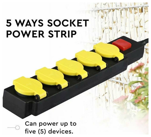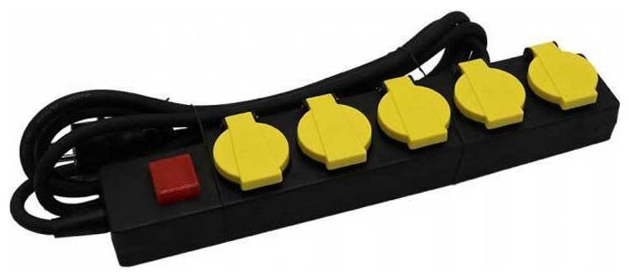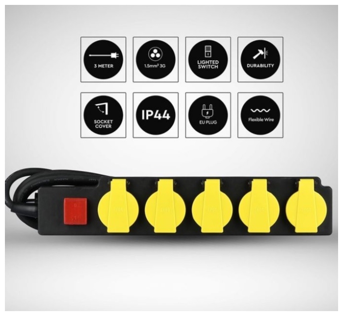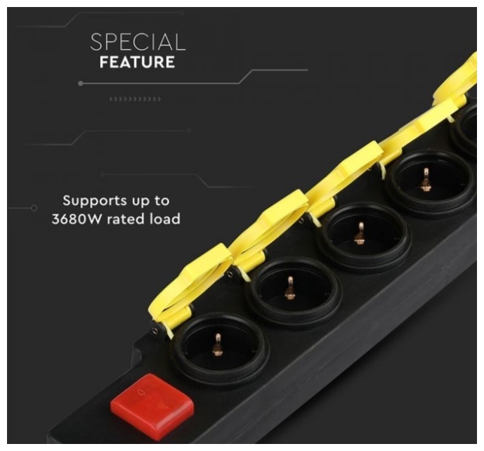 V-TAC Πολύπριζο Σούκο 5 Θέσεων με Καπάκια Αδιάβροχο IP44 3m Καλώδιο και Διακόπτη Μαύρο-Κίτρινο