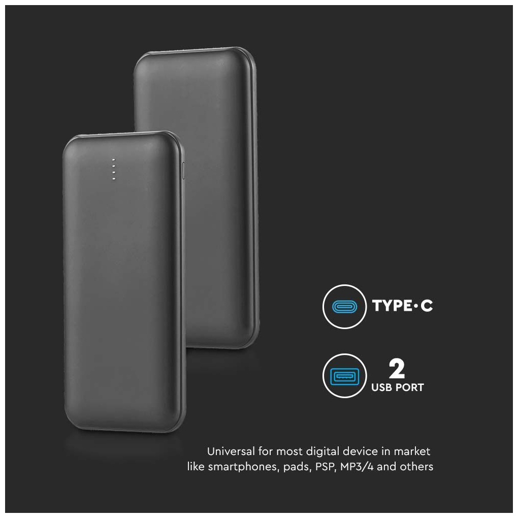 V-TAC PowerBank 10.000 mAh Μαύρο 23036